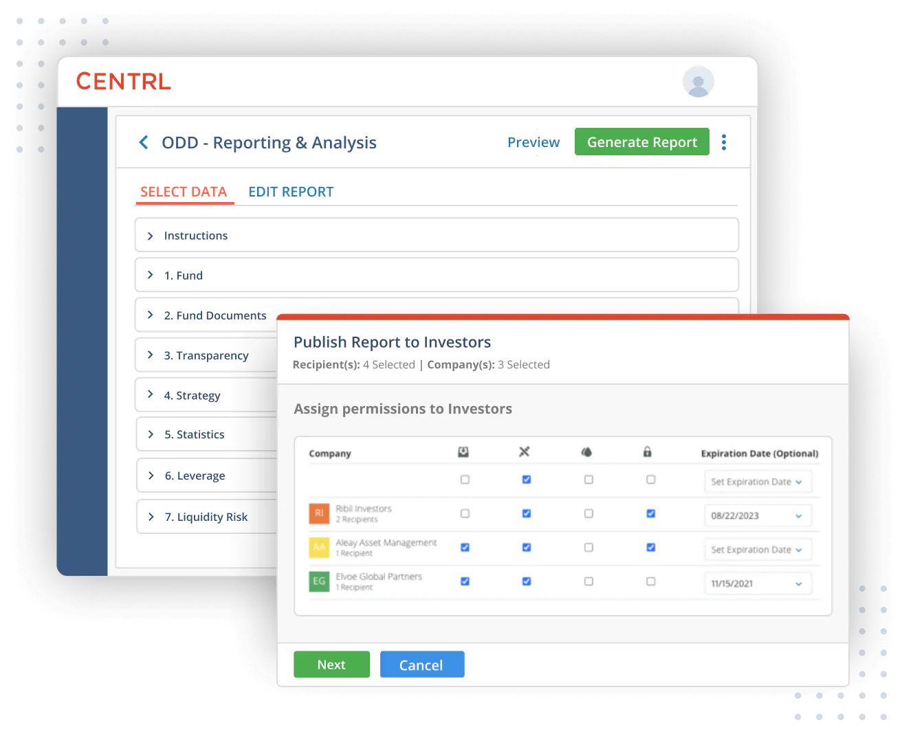 - Publish reports to investors with controlled permissions.