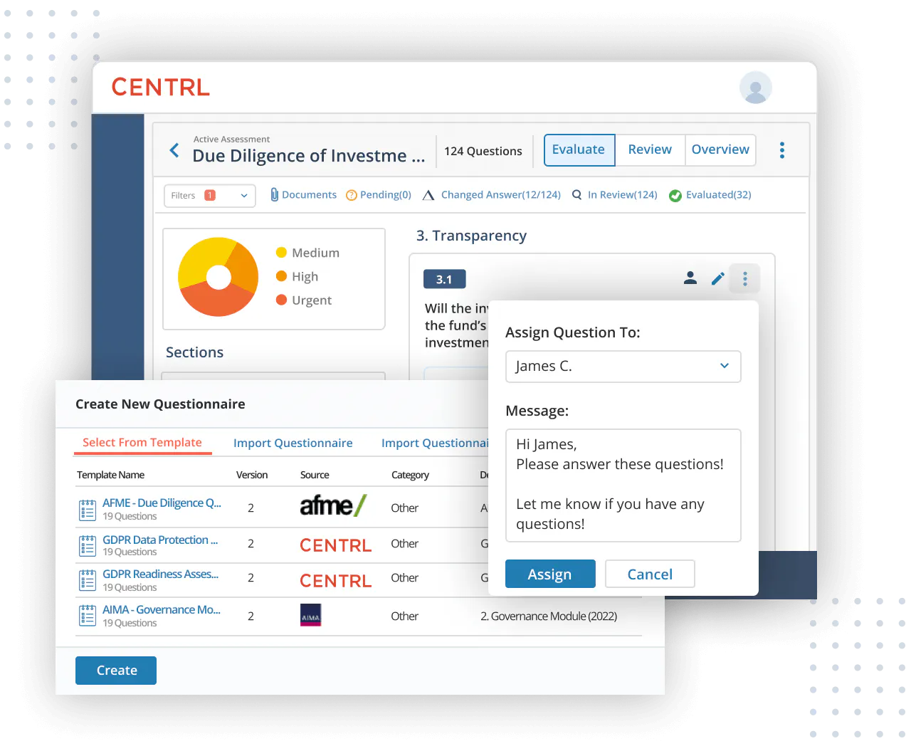 - Create due diligence questionnaires from scratch, select from a question bank, use best practice templates or import your own