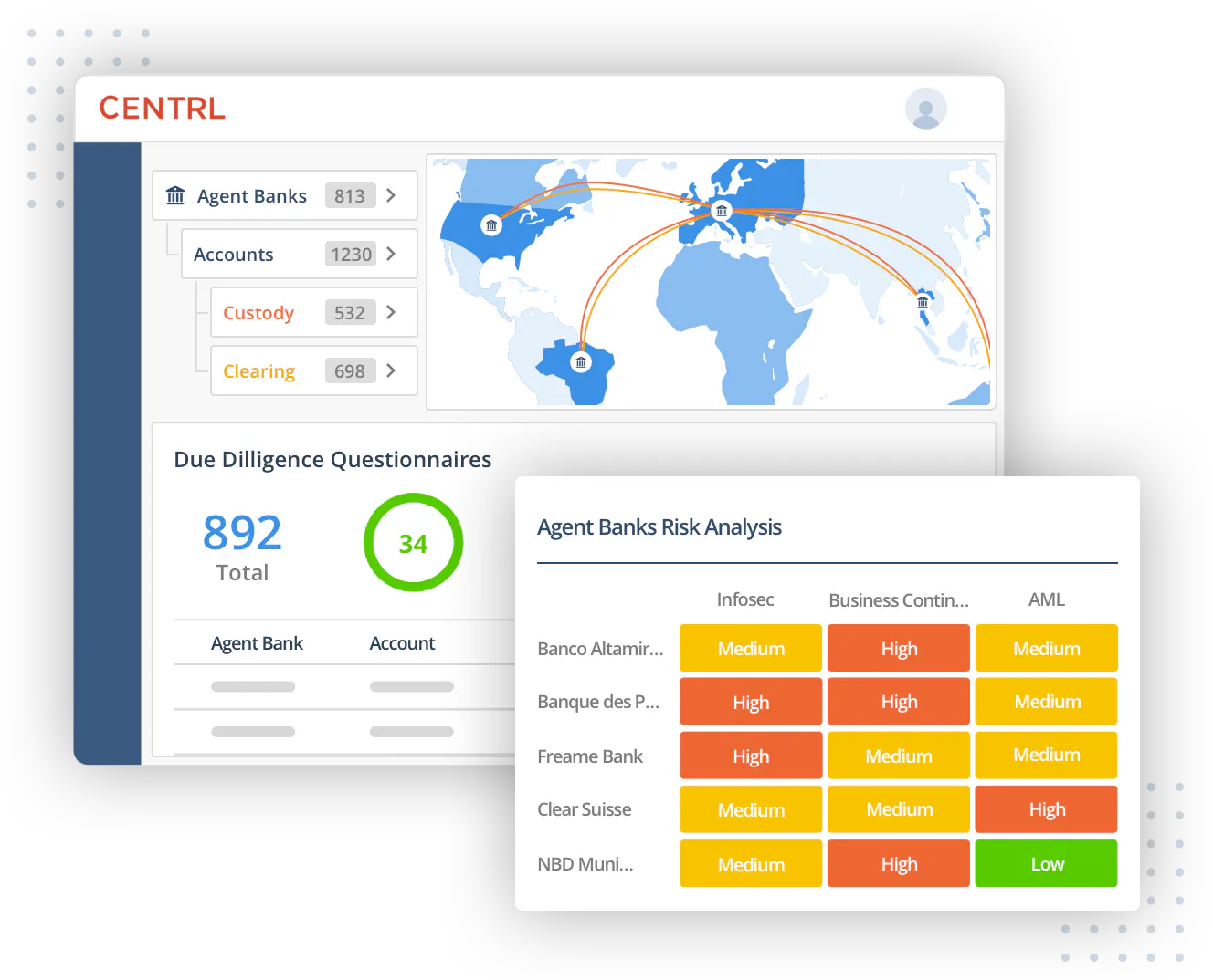 - Centralized directory of all agent banks including relevant market and legal information, contact details, and risk attributes